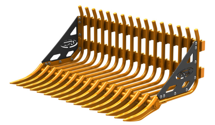 SHoule Rock Buckets can be fitted with an optional Grapple. Made from a double steel frame and chromolybdene teeth the SHoule GP-10 grapple fits buckets 1.5 to 2.7 meters.